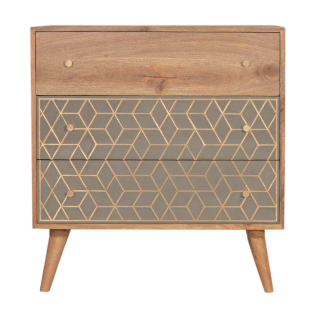 Sleek Cement Brass Inlay Media Unit