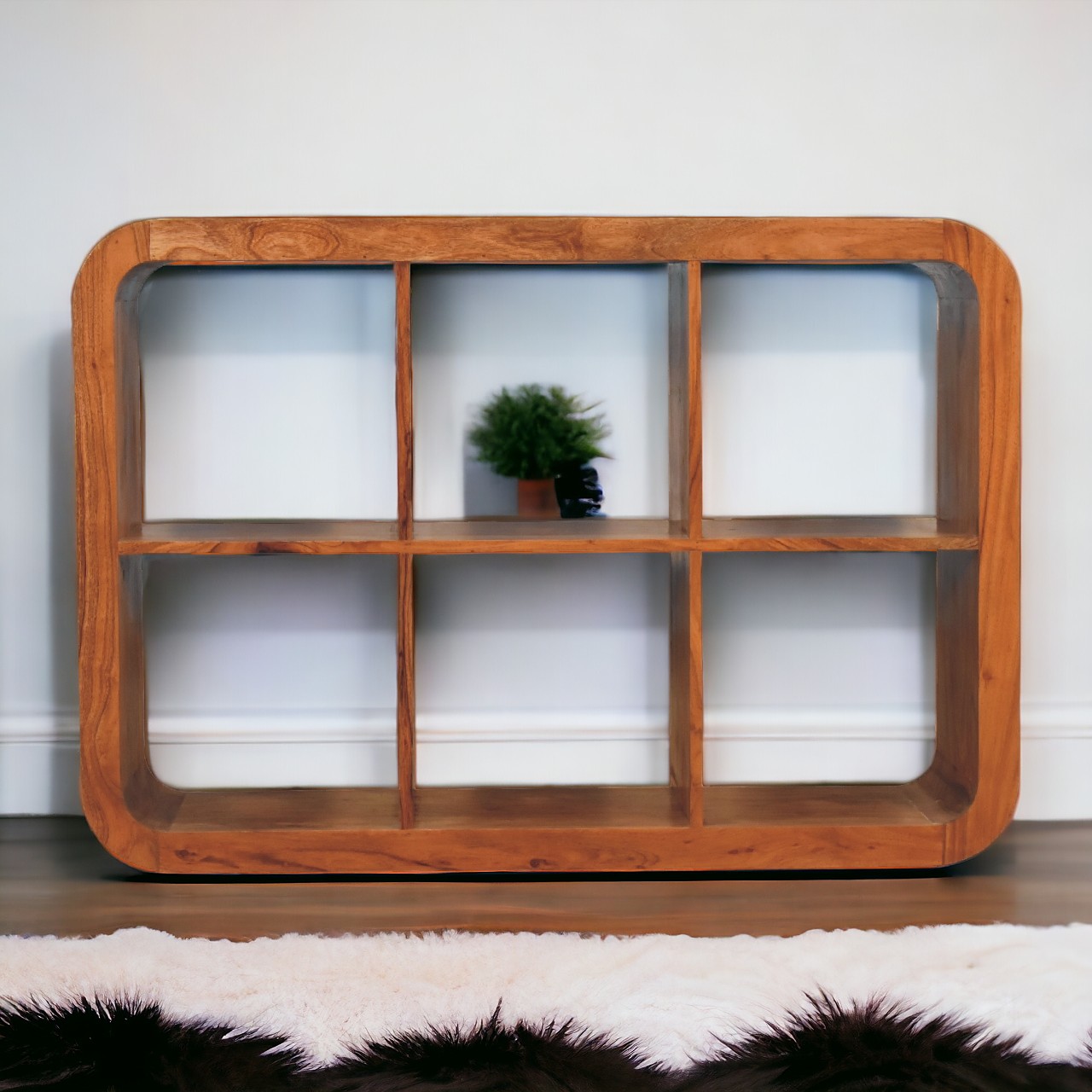 Enhance your interior with the Darcy Display Unit, designed with smooth, rounded edges for a child- and pet-friendly environment. Crafted from 100% solid acacia wood with a rich caramel finish, this stylish unit offers six open compartments perfect for showcasing ornaments, plants, photo frames, or your favorite decor pieces. Its versatile design makes it an excellent addition to both homes and business spaces.
