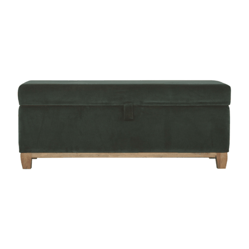 Add a touch of elegance to your home with this beautiful bench. Upholstered in luxurious emerald cotton velvet, it features a sturdy solid wood frame and feet for lasting durability. Perfect for any room, this stylish bench combines comfort and sophistication effortlessly.