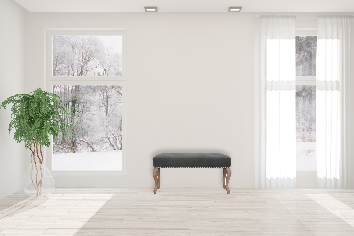 Elevate your space with this sophisticated bench, beautifully upholstered in soft grey cotton velvet. Crafted with sturdy, carved French-style legs made from 100% solid mango wood, it offers both durability and timeless charm. Featuring a deep button-tufted and studded design, this elegant piece effortlessly complements a variety of home decor styles, adding a touch of classic refinement to any room.