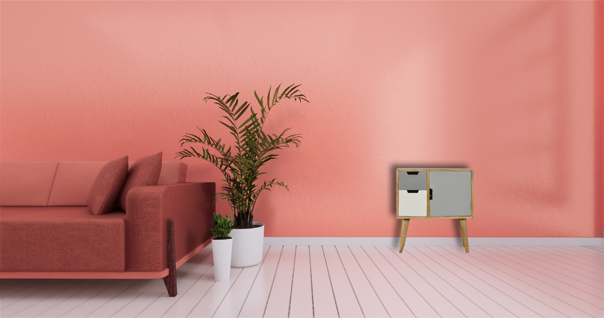 Refresh your home décor with this stylish cabinet, crafted from 100% solid mango wood and finished in a warm oak tone. It features two compact cut-out drawers and a small cabinet door, beautifully painted in subtle shades of grey. Offering ample storage space to neatly tuck away your essentials, it also provides a spacious top surface perfect for displaying photo frames, ornaments, or other decorative items. Supported by four sleek Nordic-style legs, this cabinet combines functionality with modern design to enhance any room.