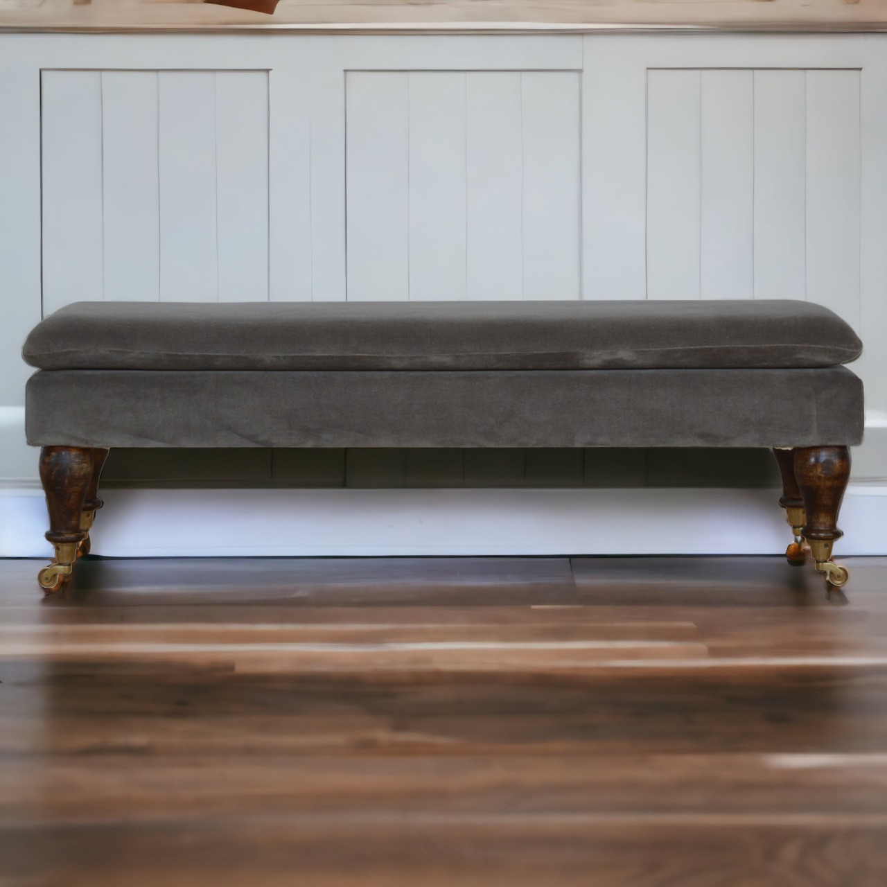 Enhance your home with this stylish bench, featuring a soft grey cotton velvet upholstery and a light walnut finish. Designed with castor feet for effortless mobility, it’s a perfect and elegant addition to your bedroom, hallway, or living room. Please note, this bench does not include storage.