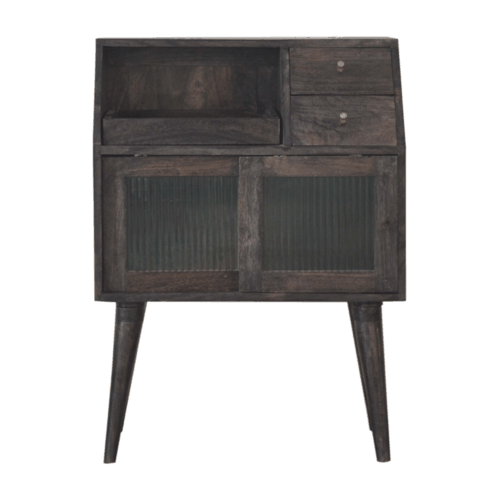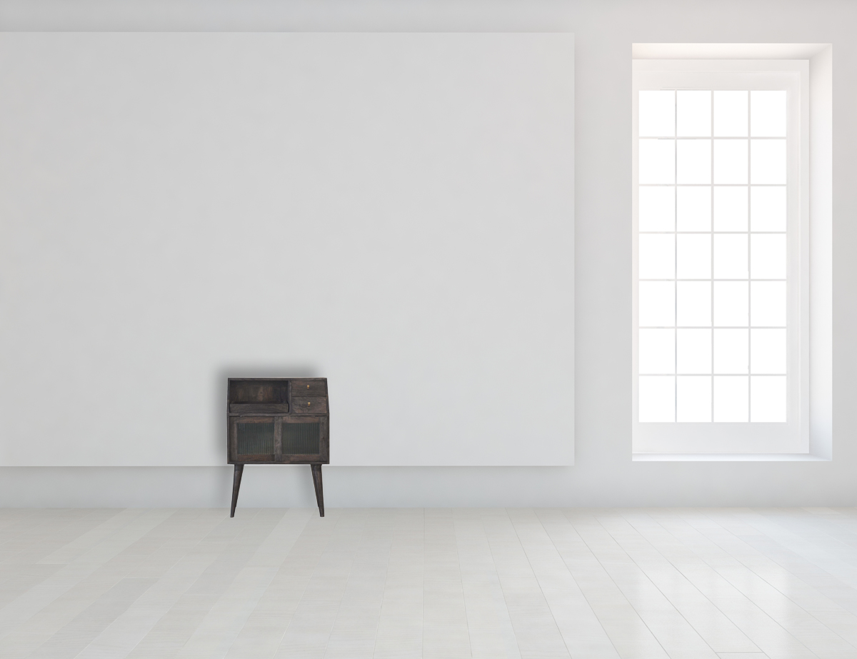 Crafted from 100% solid wood with a rich walnut finish, this compact cabinet offers both style and functionality. It includes two small drawers and a sliding compartment, providing ideal storage for your essentials. A versatile piece that complements any living room or bedroom décor.