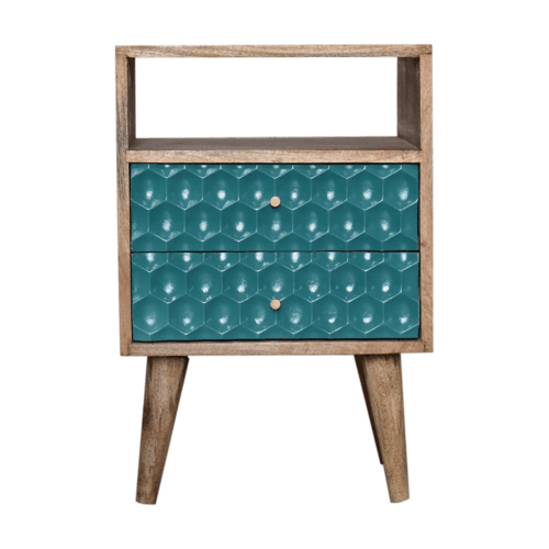 Honeycomb Teal Open Slot Bedside