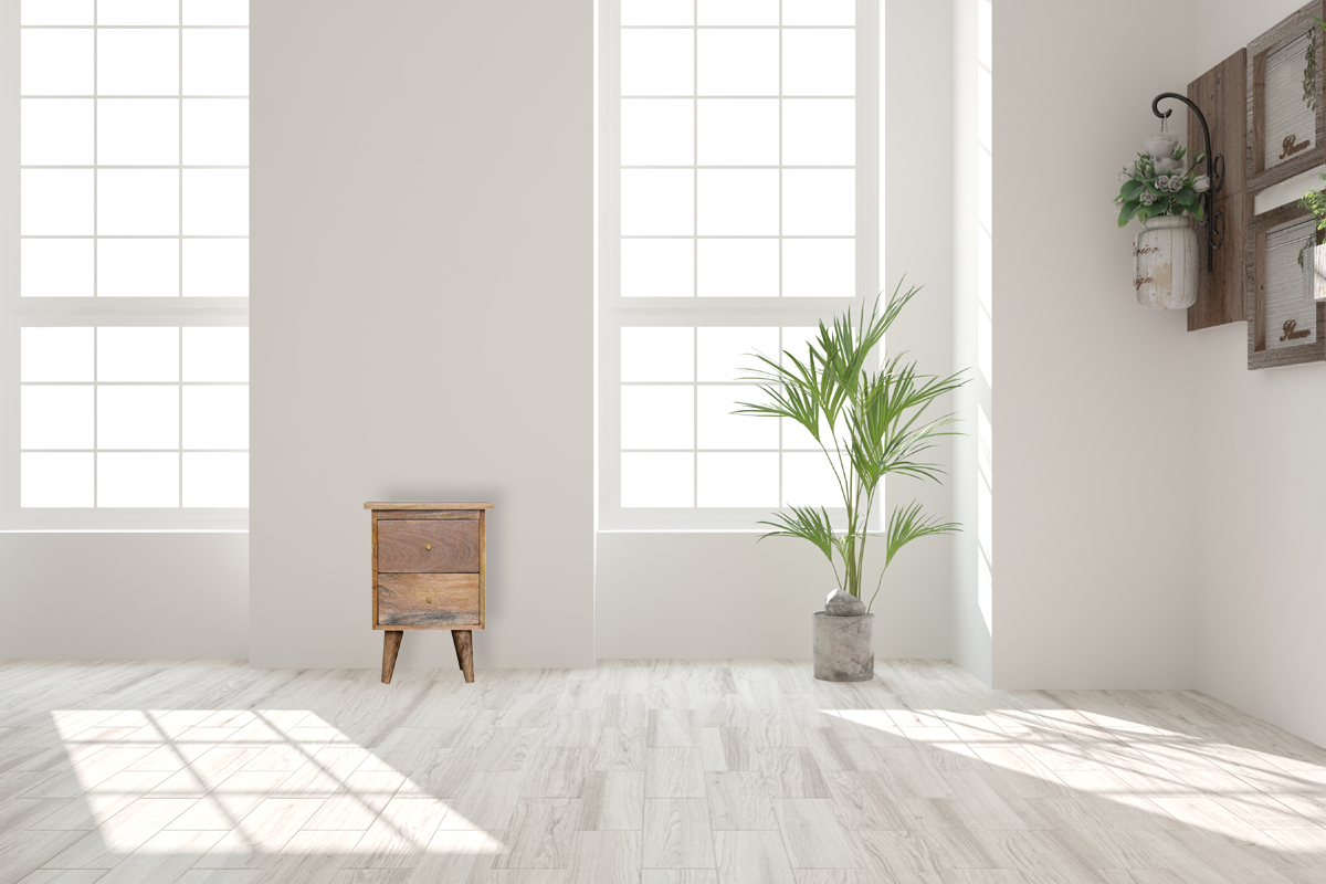 Crafted from 100% solid mango wood, this bedside table showcases sleek Nordic-style legs finished in a warm oak tone. It features two drawers with polished knobs for effortless access, combining functionality with minimalist design. A stylish and versatile addition that complements any bedroom decor.
