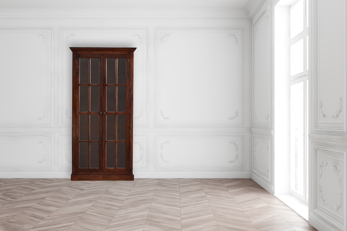 Showcase your favorite glassware, vases, or books in style with this exquisitely crafted solid wood display cabinet. Featuring a charming vintage design, it adds a timeless touch to any reception room. Made from 100% solid mango wood, it boasts a rich cherry finish that enhances its natural beauty and durability.