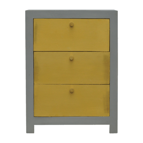 This bedside table will bring a rather unusual and unique charm to your bedroom, with the combination of cement and gold it will stand out and compliment any type of interior being it modern or country. It can be partnered with the other pieces from the cement range or stand alone as an accent piece. Featuring 3 spacious drawers with round knobs it provides more than enough space for any belongings yon wish to keep close by before bedtime.