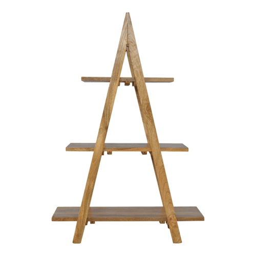 Crafted from 100% solid mango wood, this open-design display unit features a warm oak-inspired finish and three shelves of varying sizes. Its simple, versatile style complements any interior, making it perfect for any room in your home. Ideal for showcasing photo frames, ornaments, books, and more, this piece combines functionality with timeless elegance.