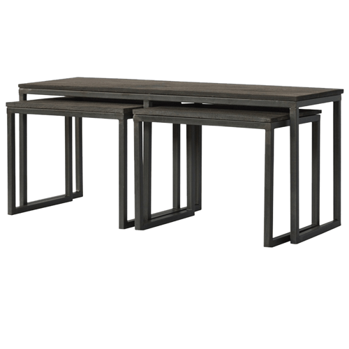 This coffee table features a set of 2 nesting tables has a iron base and is the top is constructed from 100% solid mango wood. The solid wood top has a fine sandblast finish and the base has a pewter finish. A very practical piece of furniture that will sit perfectly in the center of your living room.