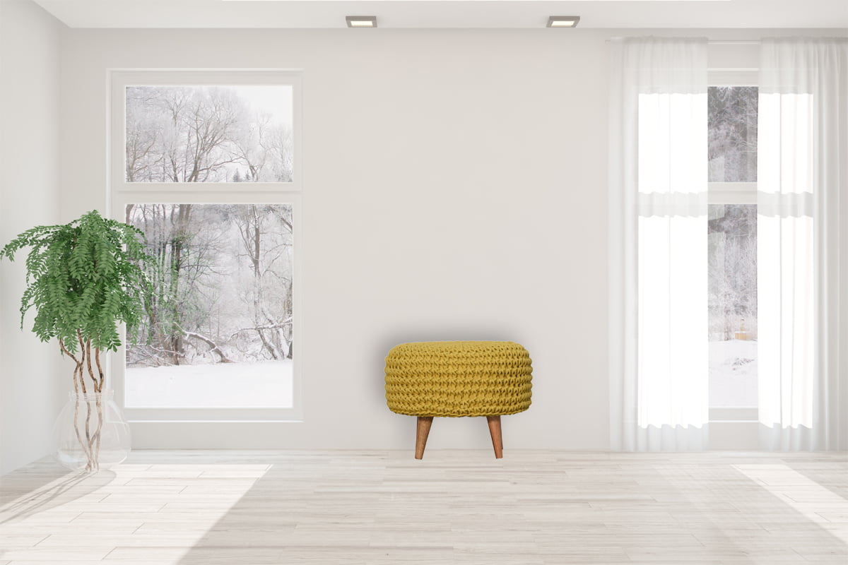 This stylish oblong footstool combines elegance with practicality, making it a versatile addition to any room decor. Its compact and lightweight design ensures easy portability, while its sturdy construction guarantees lasting durability. Featuring Nordic-inspired legs with a warm oak finish and a beautifully woven mustard top, this footstool offers a clean, modern look that complements a variety of interior styles.