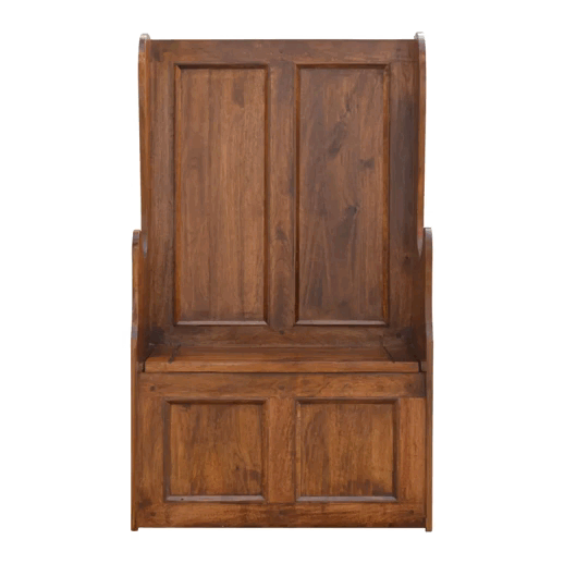 This Small Storage Bench is an ideal piece of furniture for putting boots and wellies on or off with comfortability. With plenty of storage space inside, this beautifully designed ecclesiastical-inspired bench is handmade from solid mango wood. It features exquisitely carved sides and intricate panel detailing on the front and seat back; it provides convenient storage without taking up too much space.