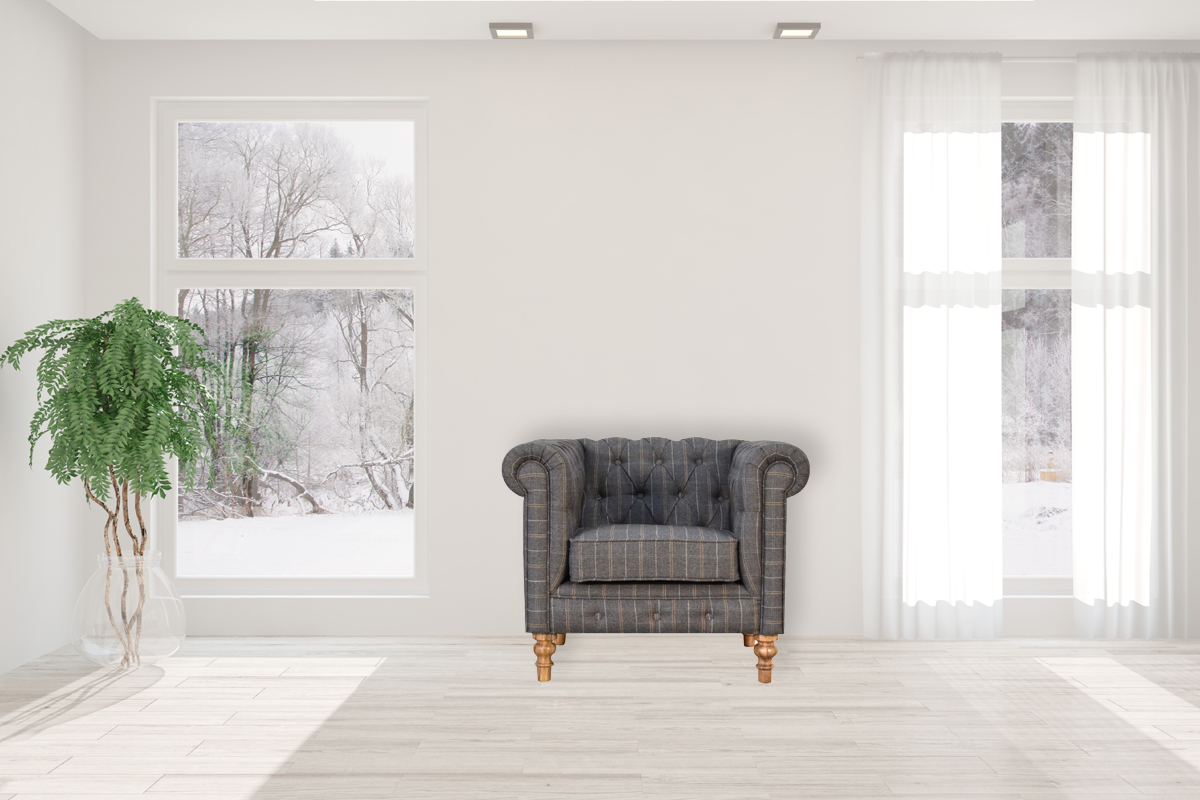 Dropship & Wholesale Pewter Tweed Chesterfield Armchair