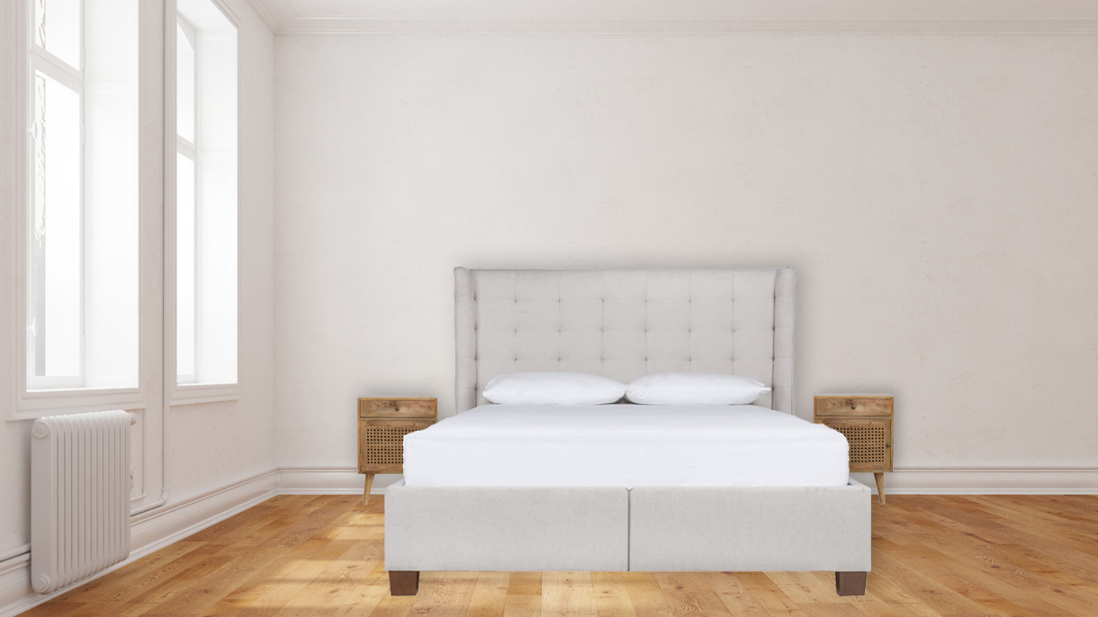 Enhance your bedroom with this sleek bedside table, crafted from 100% solid mango wood with a beautiful oak-inspired finish. It showcases four elegantly tapered, handcrafted legs and a distinctive rattan door front, perfect for storing your everyday essentials. This bedside piece combines minimalist design with natural charm, adding timeless character to your home.