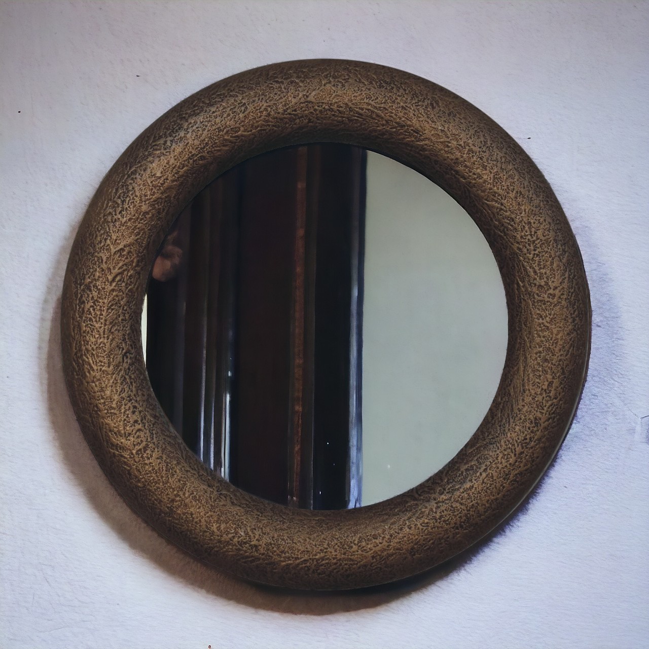 Crafted from 100% solid mango wood, this round mirror showcases a striking hammered metallic finish that adds rich texture and visual depth. Its elegant design effortlessly complements a wide range of decor styles, from contemporary to classic. Ideal for enhancing the look of any living room, hallway, or bedroom, this mirror makes a bold statement while bringing a touch of luxury to your space.