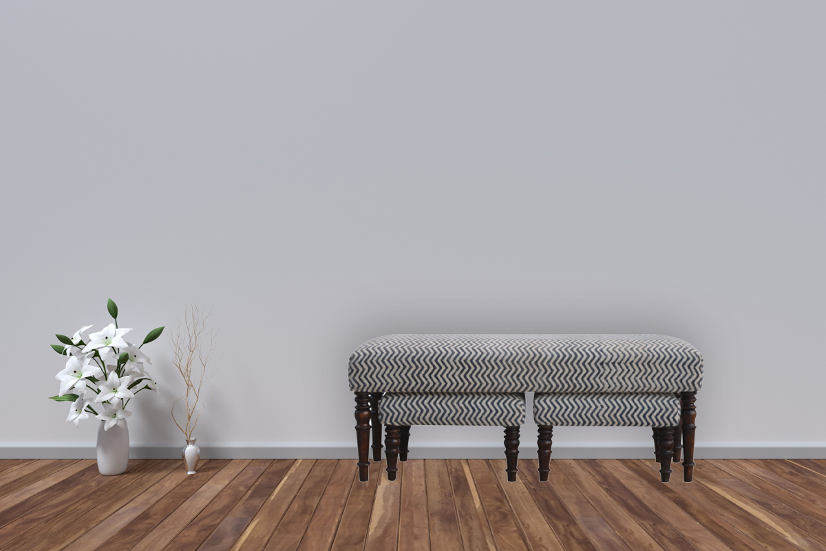 This set of three long benches is crafted from 100% solid mango wood and upholstered with natural jute dhurrie, providing a comfortable seating experience. Each bench features hand-turned feet finished in a smooth, light walnut tone, adding a touch of elegance to the design.