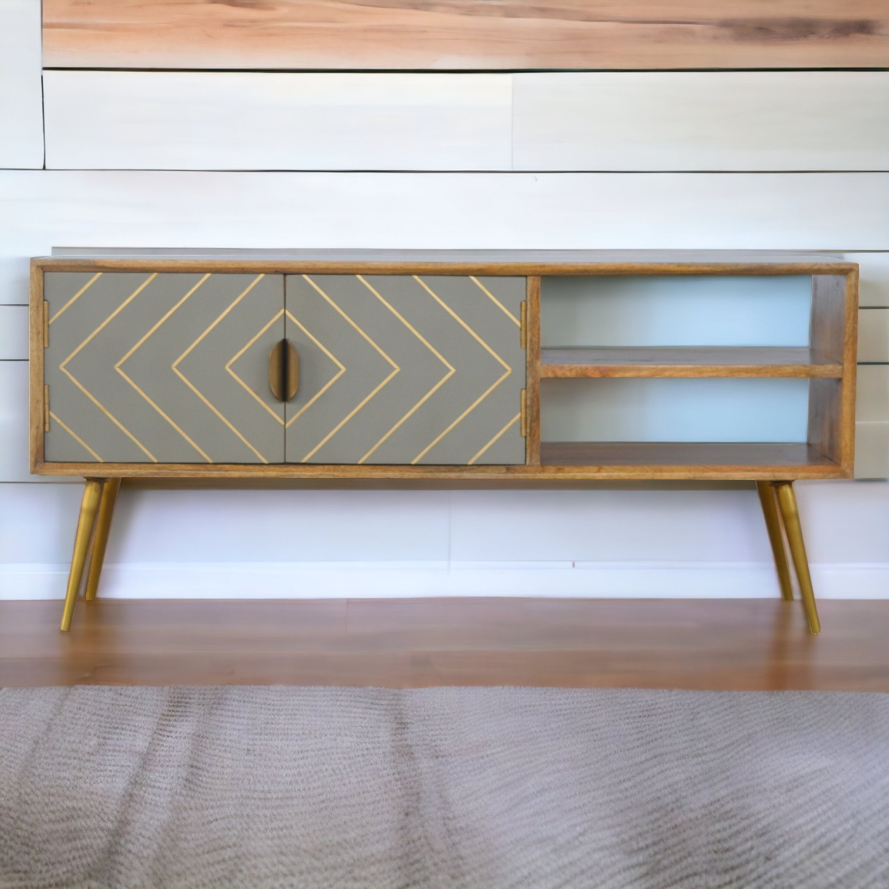 Dropship & Wholesale Sleek Cement Brass Inlay Media Unit