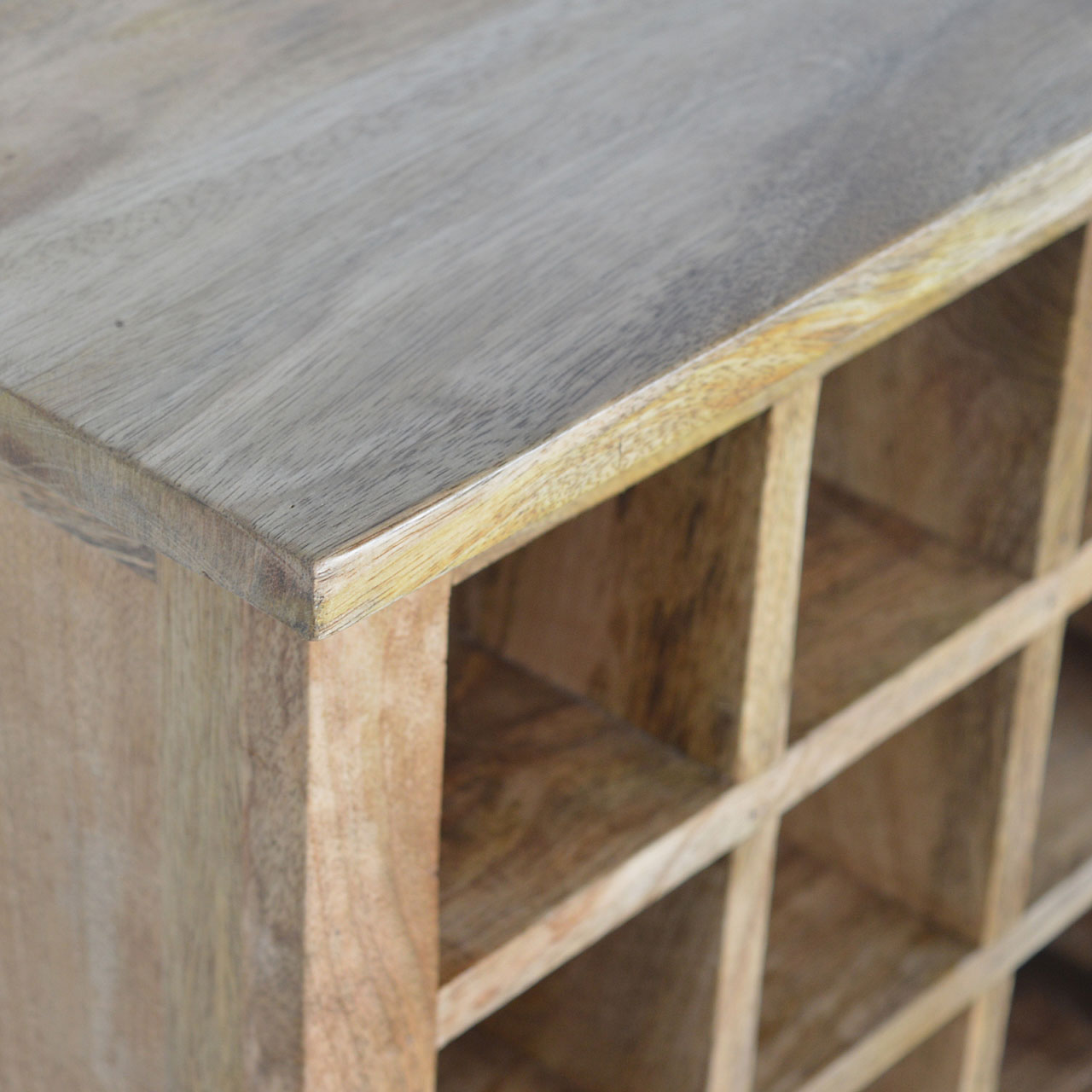 Introducing this exquisitely handcrafted cabinet, expertly crafted from 100% solid mango wood with a rich oak-inspired finish. Featuring three spacious drawers and nine dedicated wine bottle slots, it provides the perfect storage solution for your wine collection, kitchen essentials, and miscellaneous items. The lower three shelves offer ample space for groceries or everyday kitchen accessories. Designed for durability and practicality, this cabinet is a timeless addition to any kitchen or dining room. Each piece is uniquely handmade and comes with detailed care instructions to ensure long-lasting beauty and functionality.