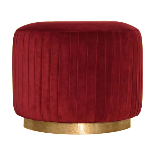 Add a touch of elegance to your bedroom or living room with this stunning footstool. Upholstered in rich wine red cotton velvet, it features a sophisticated pleated design and a sleek gold brass base. Ideal for resting your feet, holding your handbag, or serving as a stylish accent piece, this footstool combines comfort and chic style effortlessly.